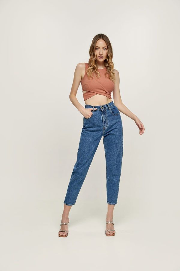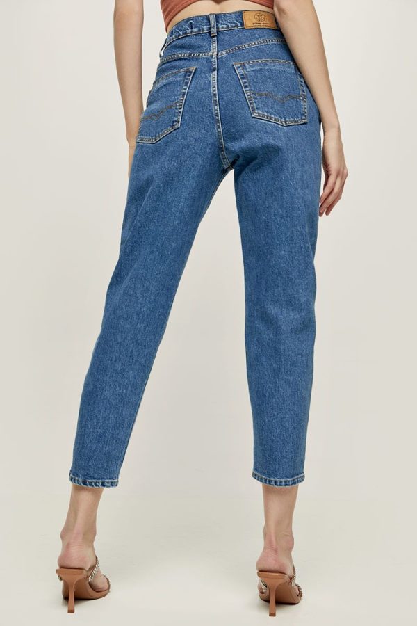 Πολύ ψηλόμεσο τζιν παντελόνι σε άνετη γραμμή με 5 τσέπες. Όψη ξεβαμμένου. Κλείσιμο μπροστά με φερμουάρ και μεταλλικό κουμπί.
