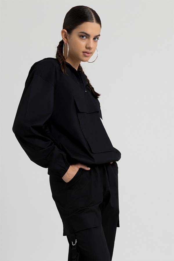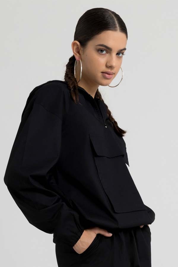 Μπλουζα Με Μεγαλη Τσεπη Εμπρός- Μαύρη