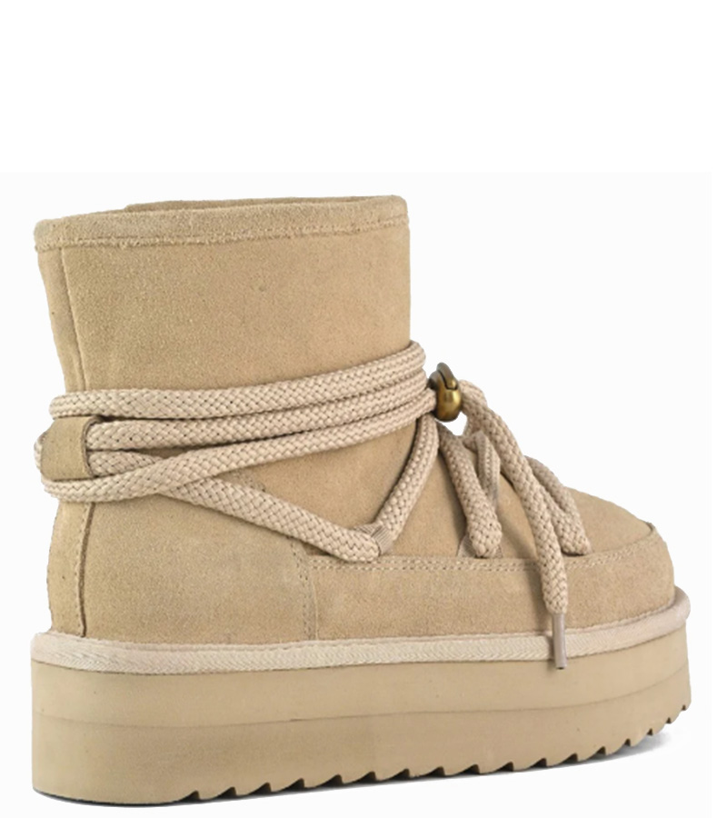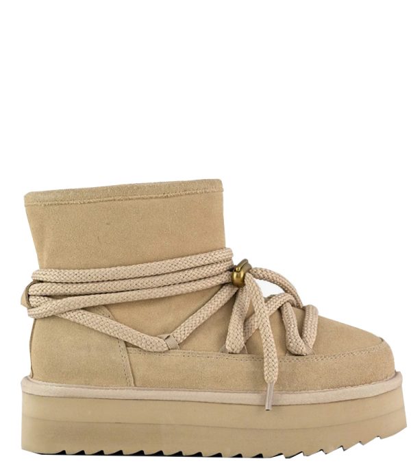 Εδώ είναι μια σούπερ cool και μοντέρνα μπότα στο βουνό. Κατασκευασμένο εξ ολοκλήρου από δέρμα σουέτ, έχει ψηλή σόλα και διακοσμείται με κορδόνια που φτάνουν από το πάνω μέρος μέχρι τον αστράγαλο και δένονται με ένα πρακτικό κορδόνι περίσφιξης. Άνετα και ζεστά, εξορθολογίζουν το βήμα όσων δεν θέλουν να εγκαταλείψουν την πολυαγαπημένη ορεινή εμφάνιση.