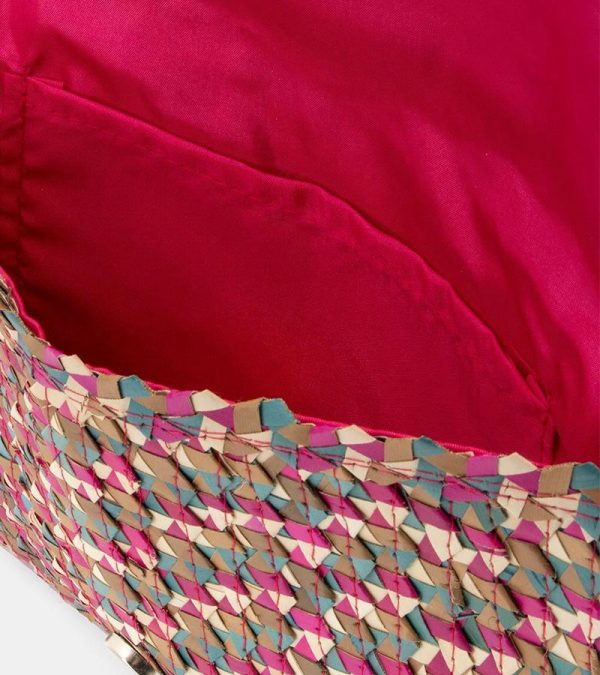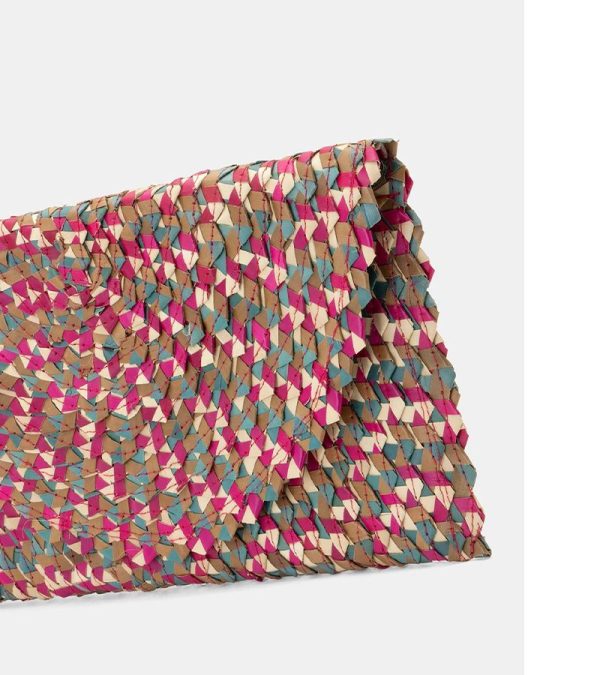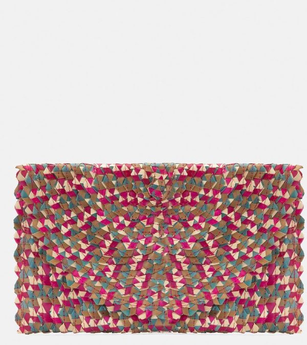 Ψάθινος φακέλος με πολύχρωμη πλέξη. Φόδρα στο εσωτερικό. Κλείνει με μαγνητικό κούμπωμα. ΠΧΥ : 28X17. Σύνθεση : 100% STRAW
