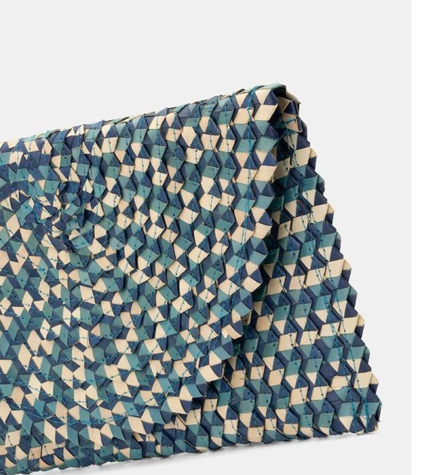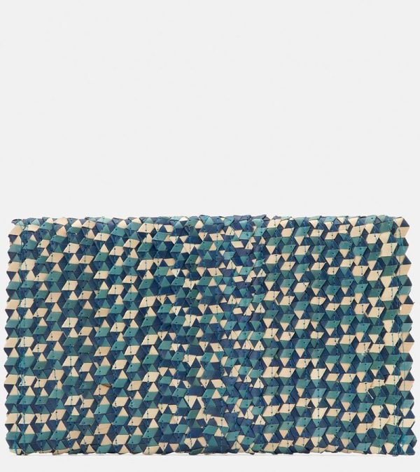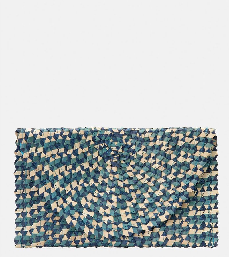 Ψάθινος φακέλος με πολύχρωμη πλέξη. Φόδρα στο εσωτερικό. Κλείνει με μαγνητικό κούμπωμα. ΠΧΥ : 28X17. Σύνθεση : 100% STRAW
