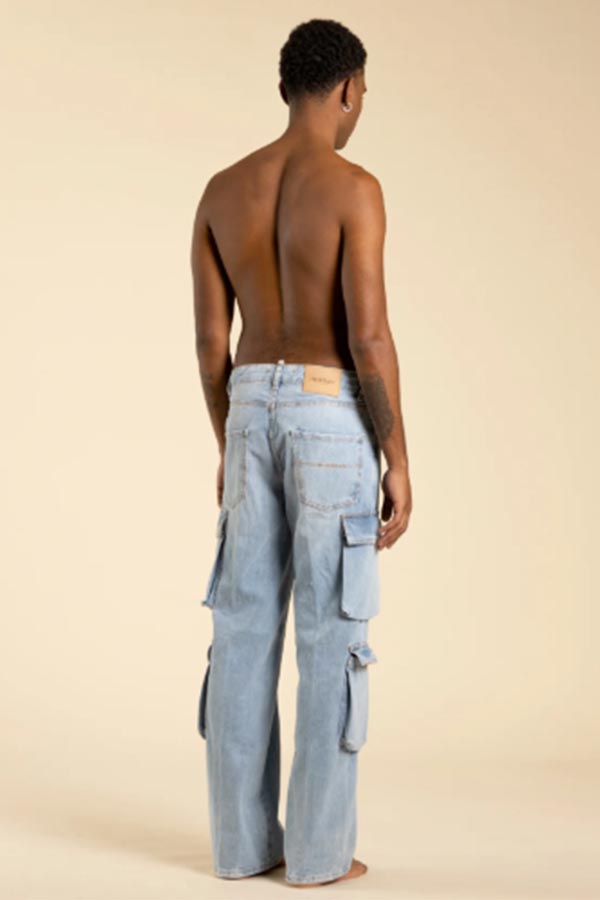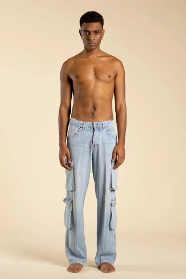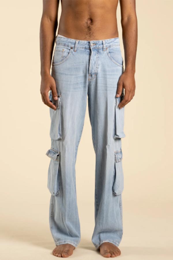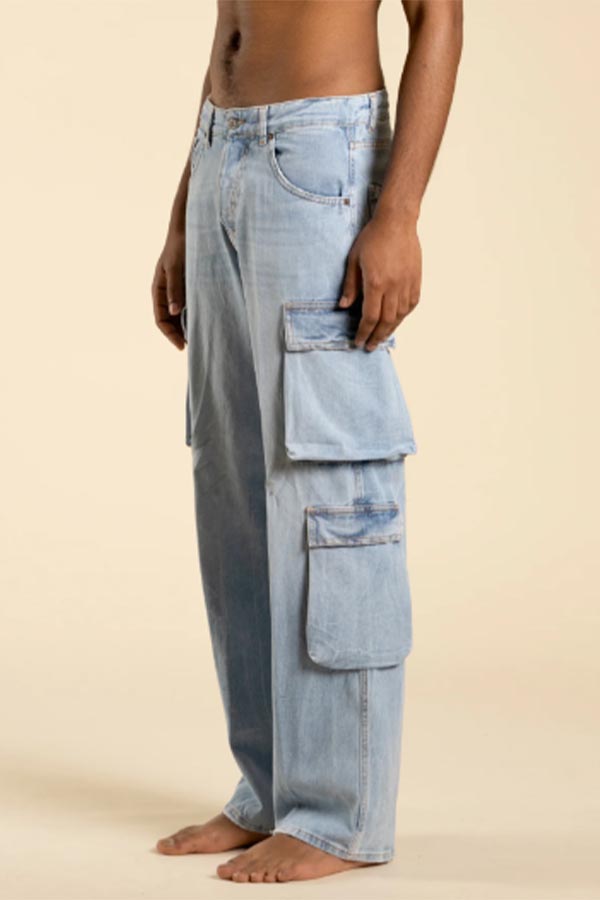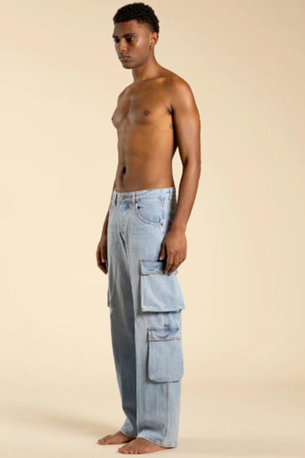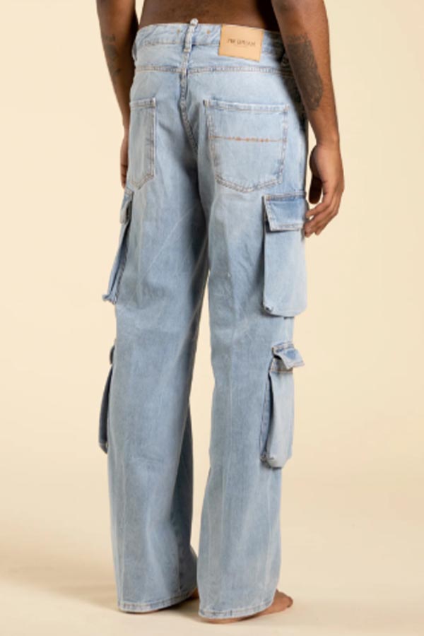Jeans cargo fondo ampio effetto slavato chiaro