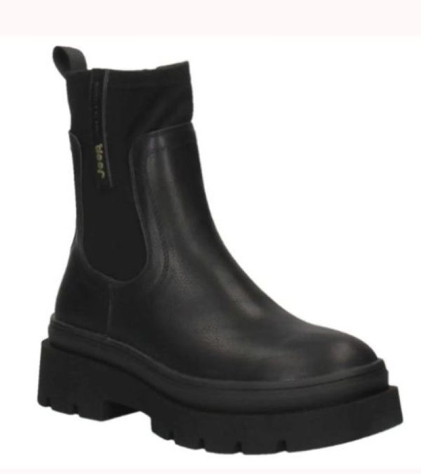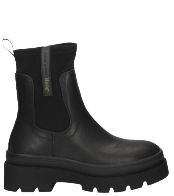 Δερμάτινα γυναικεία μαύρα μποτάκια Barrel Chelsea, σε στυλ Biker με τακούνι της εταιρίας Jeep Footwear.