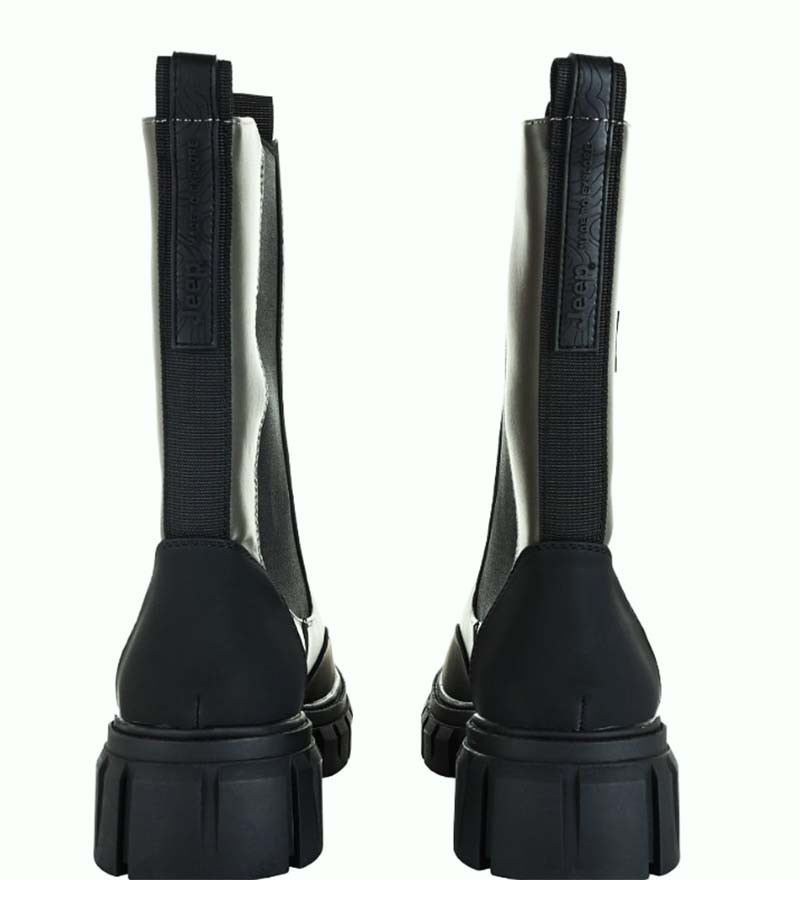 Γυναικεία μποτάκια με τακούνι της εταιρίας Jeep Footwear. Διαθέτουν λάστιχο στα πλαϊνά για εύκολη εφαρμογή.