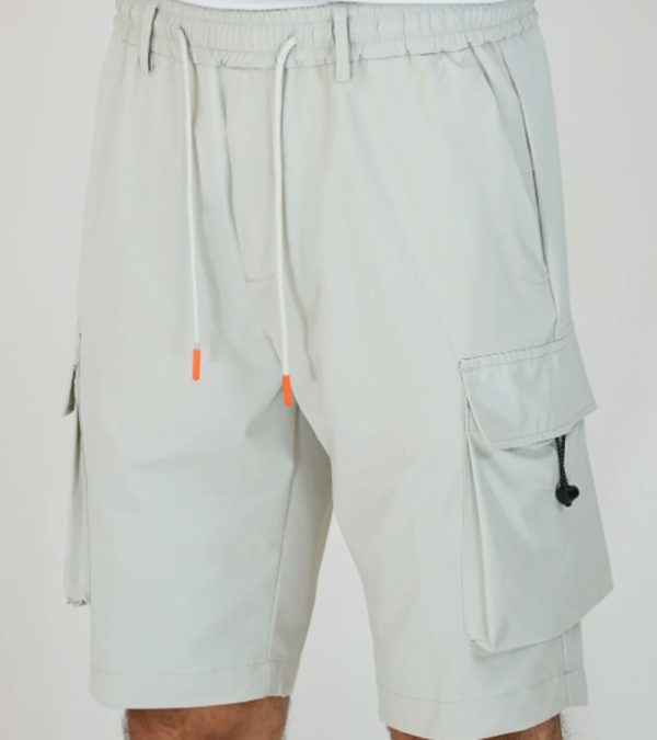 Σορτς βερμούδα με λάστιχο και κορδόνι στη μέση, με λοξή τσέπη και μεγάλη πλαϊνή τσέπη και δύο τσέπες welt στην πλάτη. κόμβος τεχνολογίας