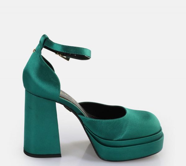 High fashion takes on a whole new meaning with the exciting May Dorsay sandal. A ravishing green hue is combined with a stylish block heel as well as a rounded front on a platform shoe. The vegan material steals the show from all other fashionista shoes with its incomparable shine. Enjoy ultimate comfort thanks to the soft memory foam sole. Combine the stylish sandal with a cool dress.