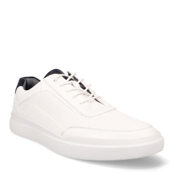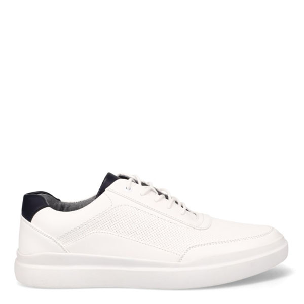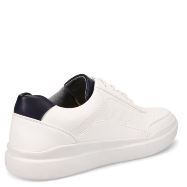 Λευκό ανδρικό sneaker. Διαθέτει λευκή σόλα και δένει με κορδόνια.