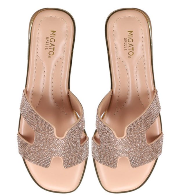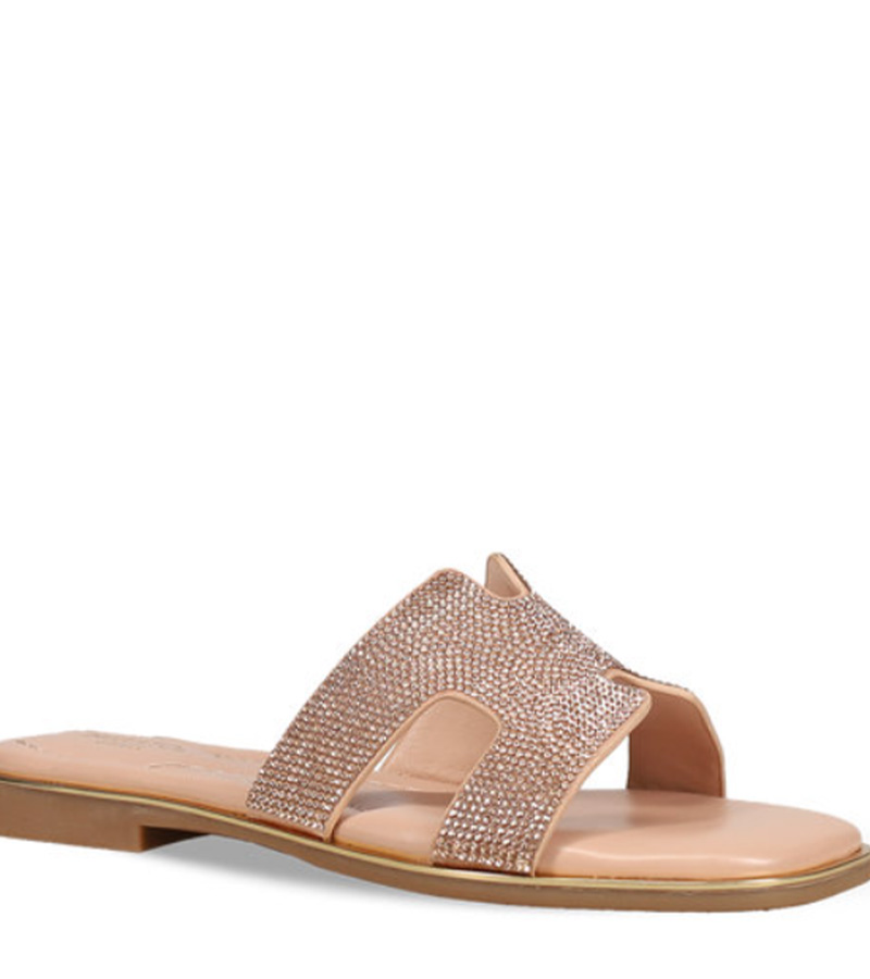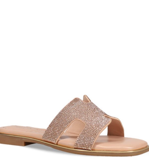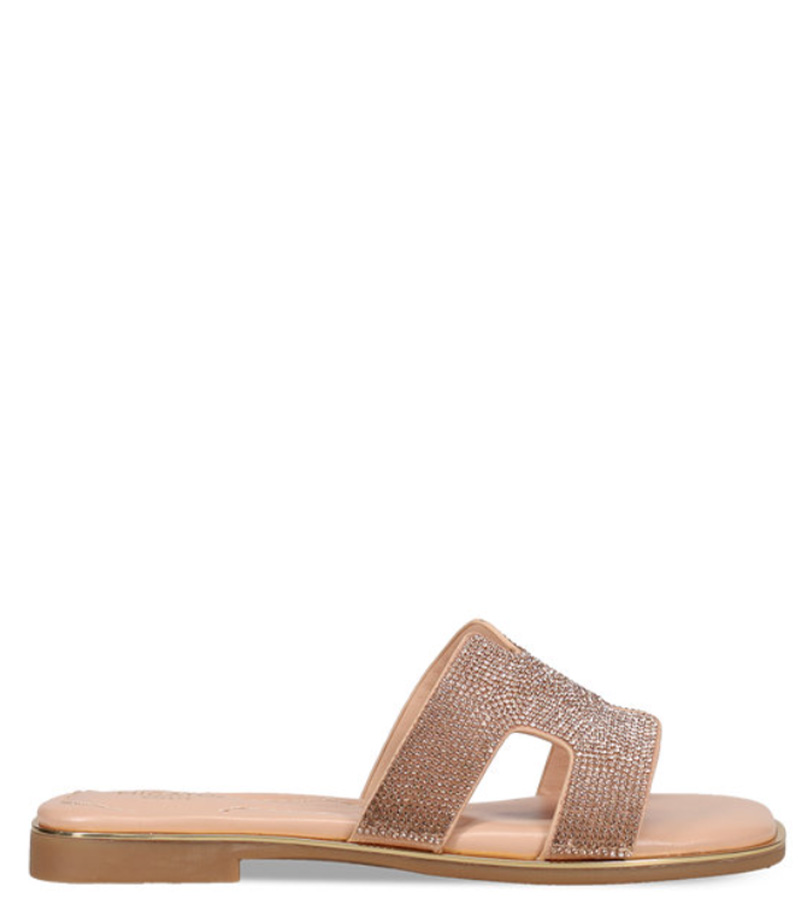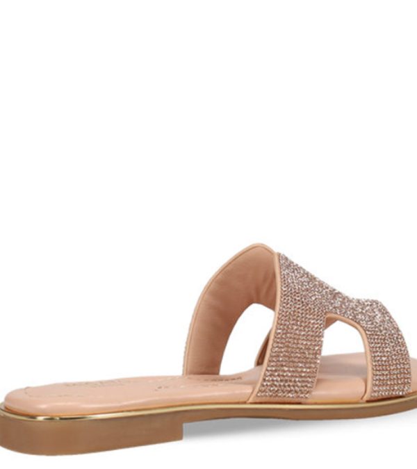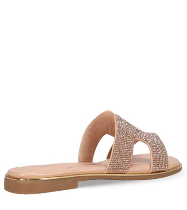 Ροζ χρυσό σανδάλι. Διαθέτει φαρδιά φάσα διακοσμημένη με στρας.