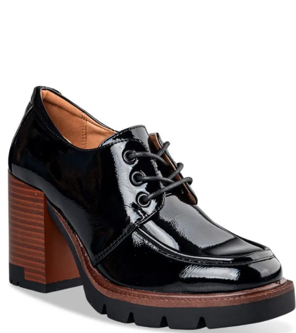 Miss NV δετά brogues από συνθετικό λουστρίνι με χοντρό τακούνι